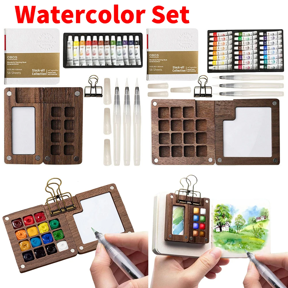 Mini Travel Paint Palette Set Pocket Artist Watercolor Paint Palette Travel Kit with Watercolor Pens Watercolor Palette Set
