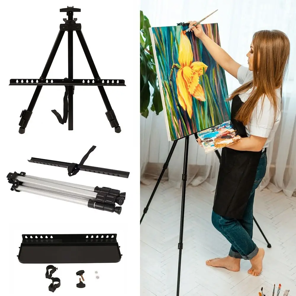 1PC Lightweight Black Metal Painting Easel Portable Adjustable Poster Stands Floor Tripod Collapsible Display Easel