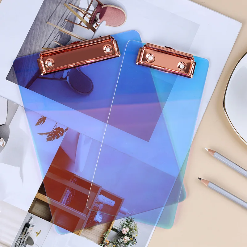 Laser Bronzing Acrylic Clipboard with Storage High-transparency Paper Board Holder Test Paper Folder Office Stationery Supplies