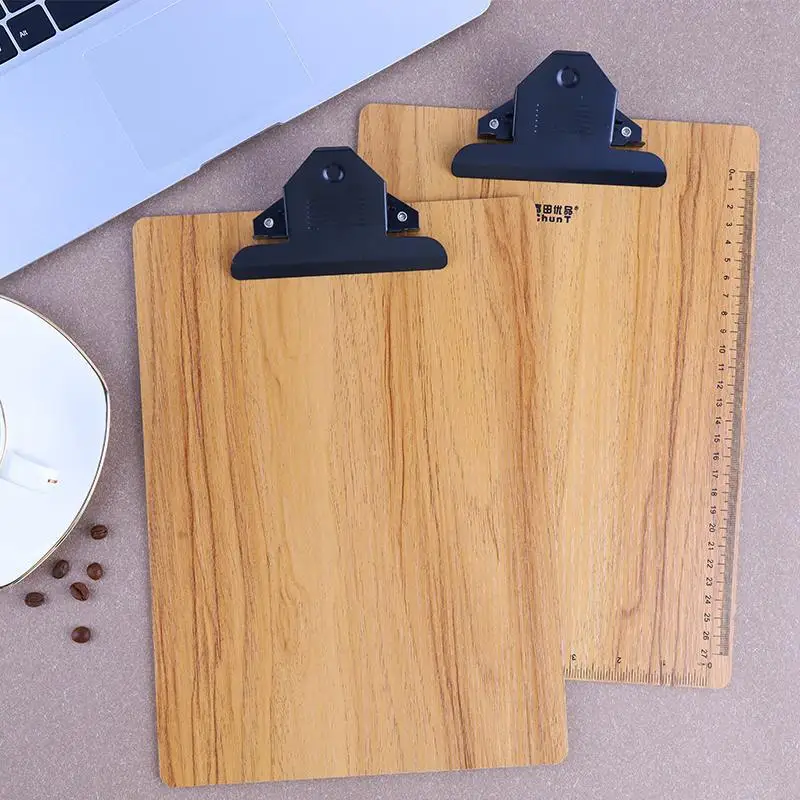 Wood Grain A4 Clipboard with Thick Hard Fiber Writing Pad - Insert Pen Writing Clipboard for Meeting Notes and Transcription