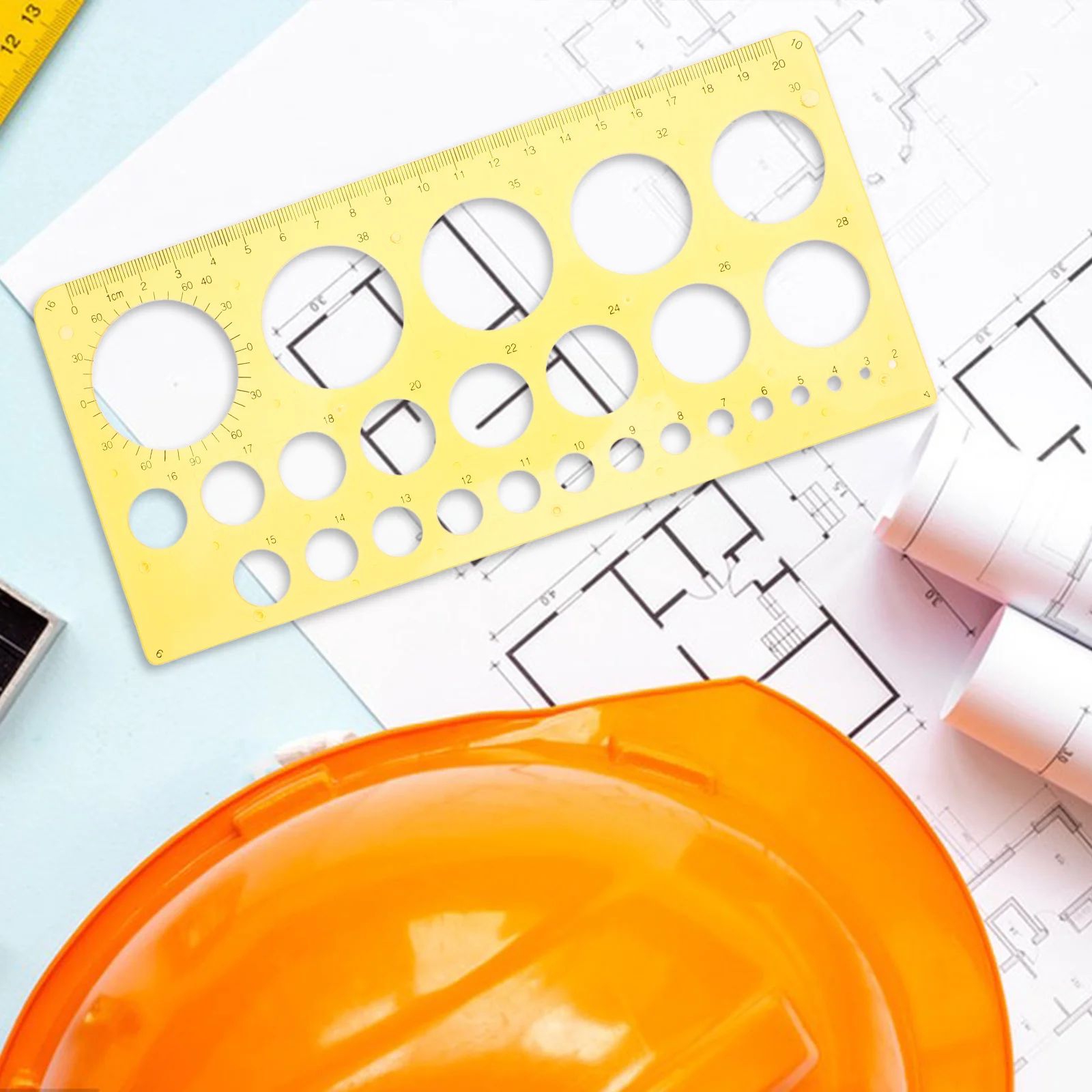 Circle Stencil Ruler Plastic Multi-Function Drawing Template for Accurate Geometric Shapes Precision Drafting Tool Yellow