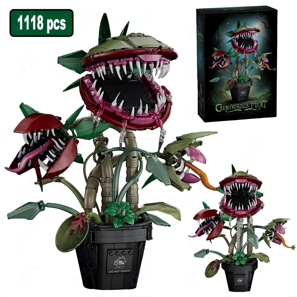 MOC Carnivorous Flower Potted Plant Model Building Blocks City Creative Simulation Exotic Bricks Educational Toys Kids DIY Gifts