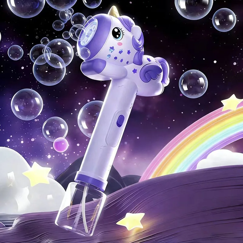 Unicorn children's electric bubble gun, toy bubble machine, automatic soap blower with lights, outdoor party games, children's g