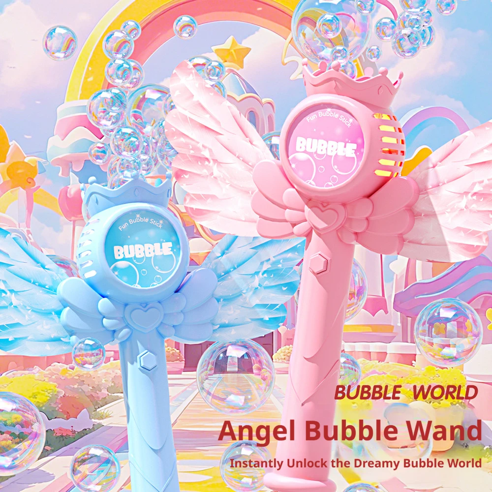 2026 New Electric Angel Automatic Bubble Handheld Bubble Stick Emit Light and Sound Bubble Gun for Party Summer Outdoors Toy