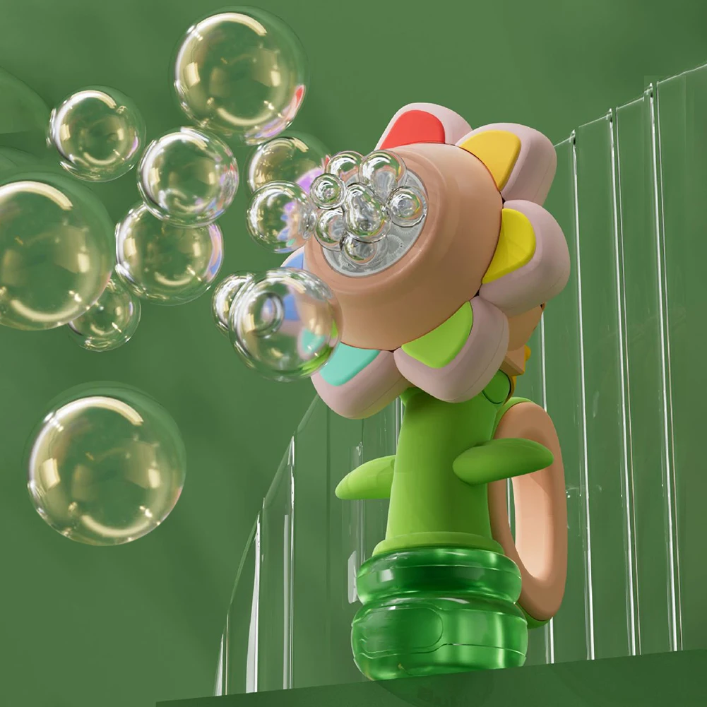 Electric Bubble Maker Machine Toy Sunflower Shaped Automatic Shaking Head Adjustment Light Bubble Blowing Maker Toy For Children