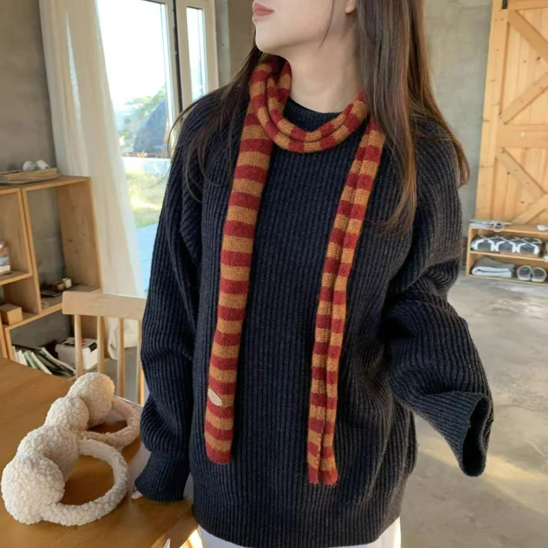 Korean-style Autumn and Winter Striped Narrow Scarf, High-end Versatile Slim Muffler, Cozy and Warm, Soft and Skin-friendly