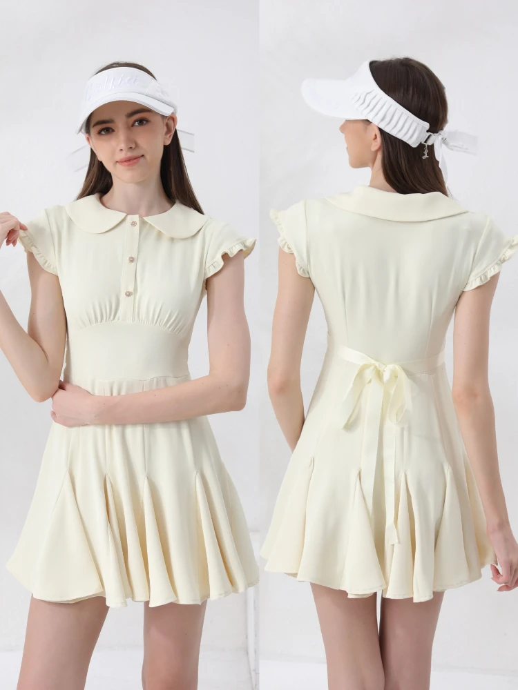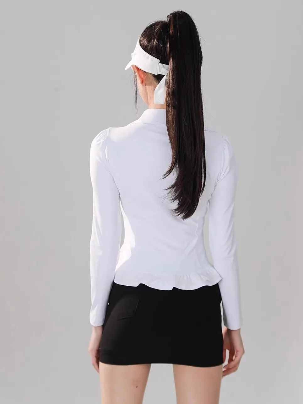 Ladies Golf Sportswear Hebe Sle White Long Sve Waist-Cinched Princ Ball Gown High Elastici Base irt Ele Golf ...