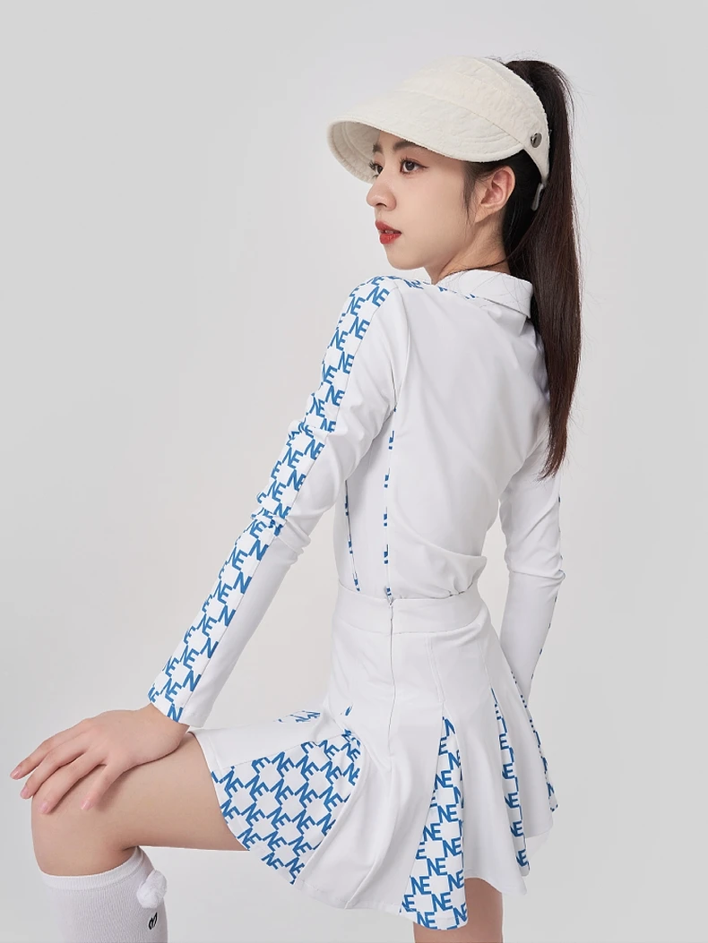 Niefle Golf Spor Slim Fit Long Sve Zipper Top And Pleated ort Skirt Anti-Light Set Deep Blue Casual Sle Fitn Fan ...