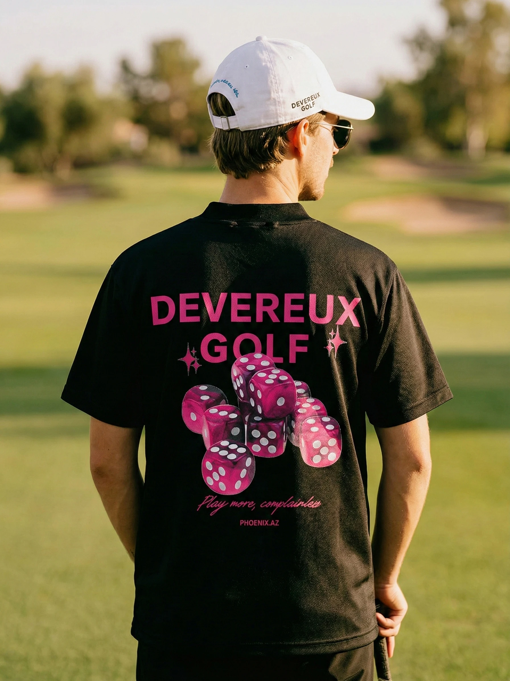 Devereux Men's Golf ort Sve T-irt Luy Print ved High Collar Bla Pink Dice Spor Casual Faion Golfwear