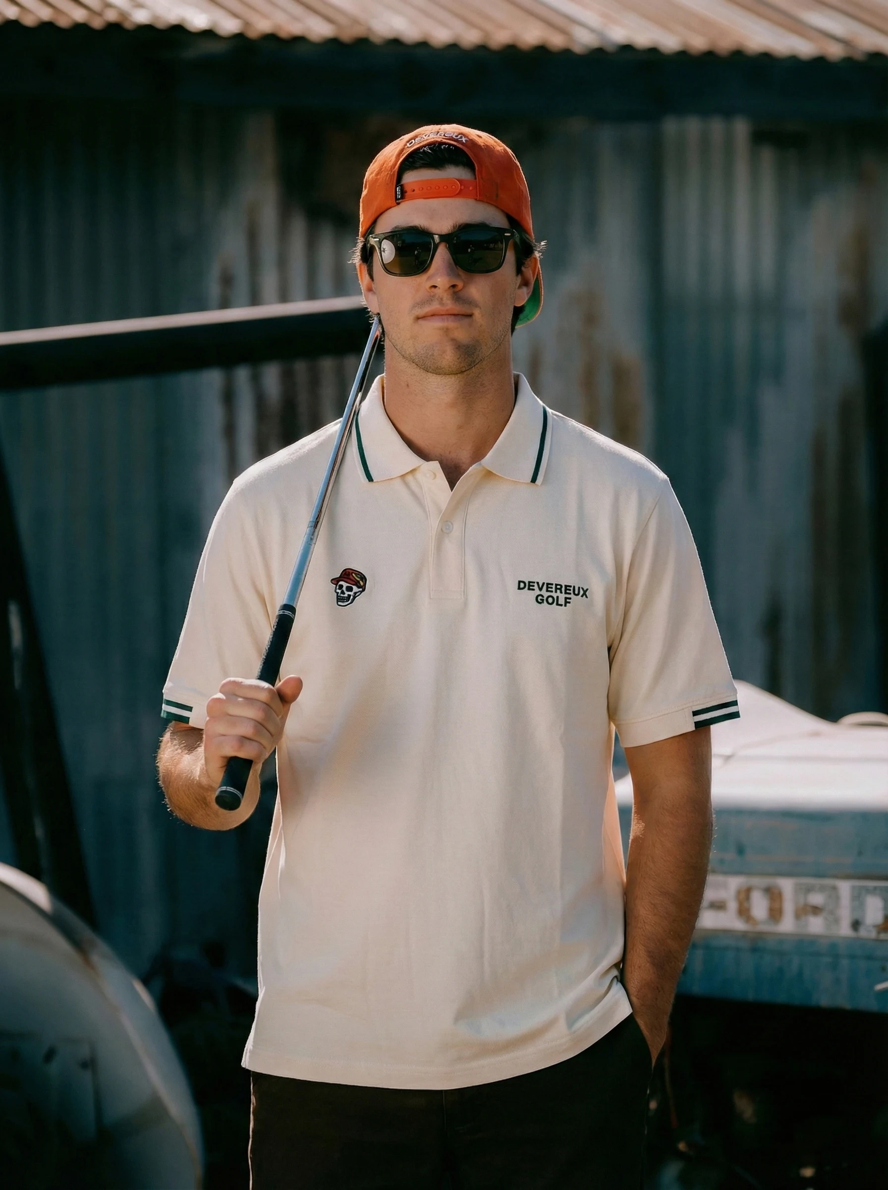 Devereux Men's Golf irt ort Sve Hand-Dn fiti Color Blo Collar Fun Line Sketch Trendy Sportswear