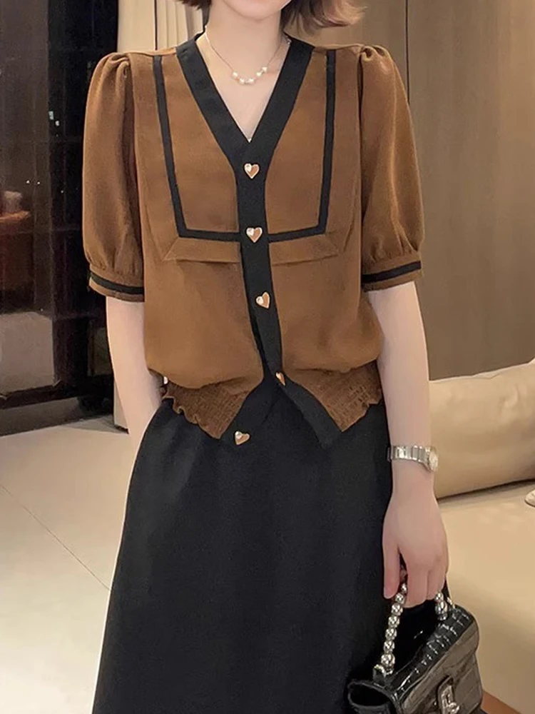 Summer ort Sve Striped Design Simple Commute Women's Base irt Single Button Faion Sensation Color Blo Top