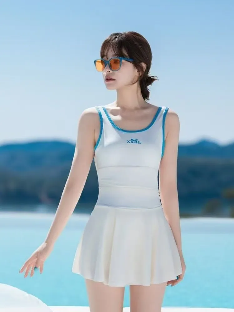 2025 New One-Piece Swimsuit for Girls Conservative Belly Covering Slimming Design Flat Footwear for Hot Springs Vaion