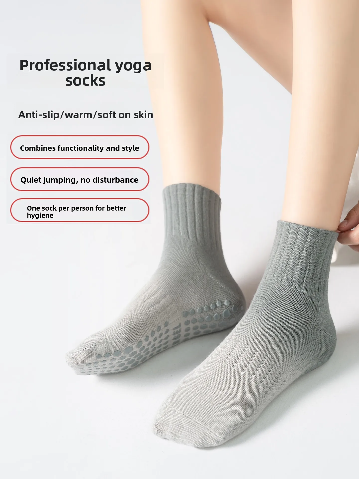 Ladies' Mid-tube Bottom Non-slip Yoga Socks Women Professional Fitness Pilates Indoor Floor Dance Socks for Gymnastic Ballet