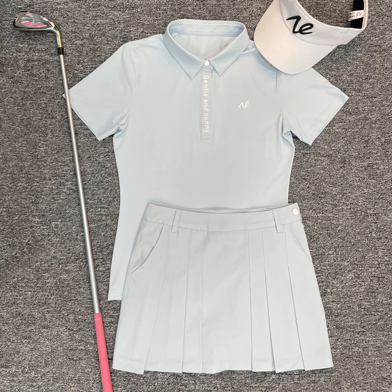 Netls Summer Golf ort Sve T-irt Skirt Sports Qui Dry Star Blue Pants Skirt Sun Protection ort Skirt Faion Set
