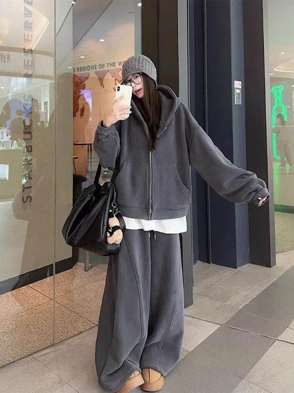 Loose Fit Women's Hoodie And Wide Leg Pants Set plus Size 300 Pou Comfortable Lazy Sle Two Piece Suit for Autumn