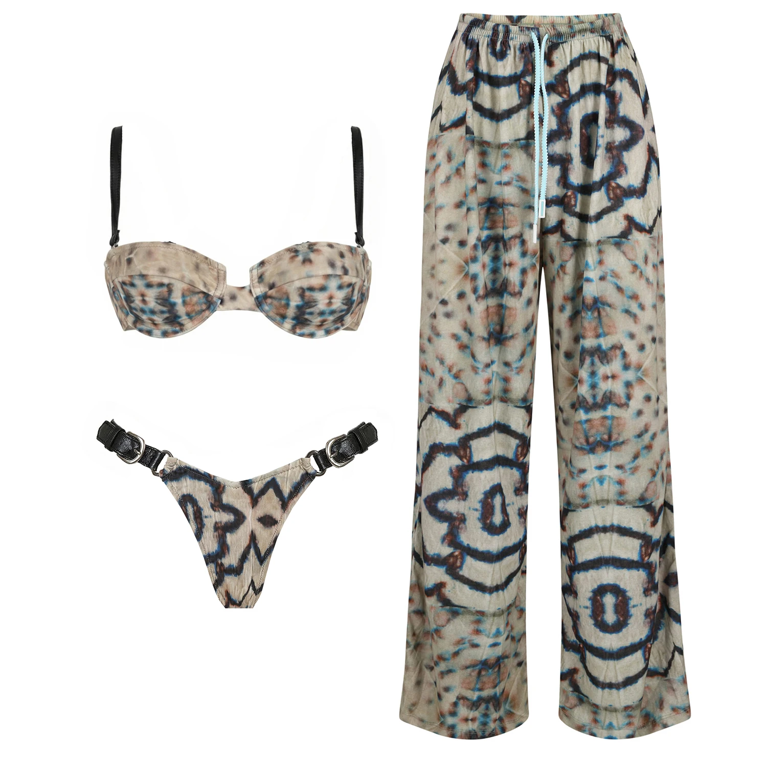 Bandeau 3 Pieces Bikini 2026 Sexy Women Swimsuit Swimwear Female Dress Cover Up Bikini Set Beachwear Bathing Suit Swimming Suit