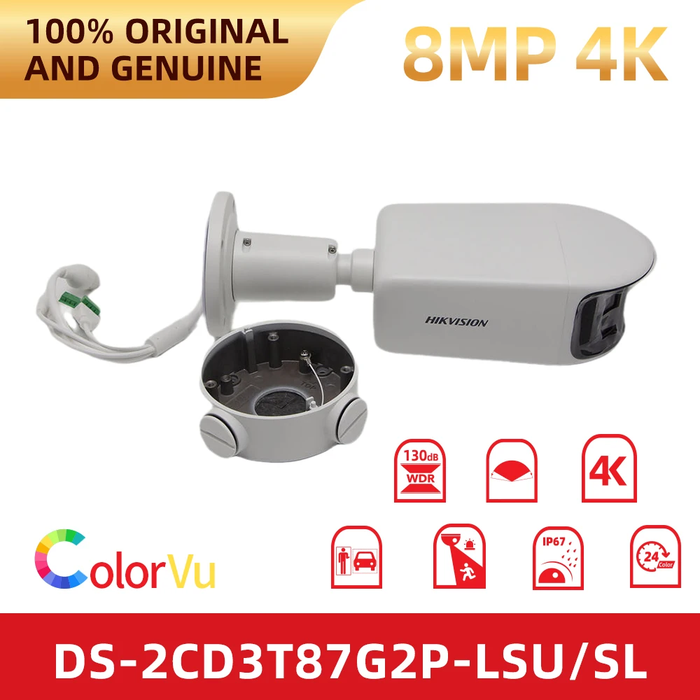 Hikvision DS-2CD3T87G2P-LSU/SL 4K 8MP Panoramic IP Camera ColorVu 24/7 AcuSense Human Vehicle Detection Strobe Light Audio