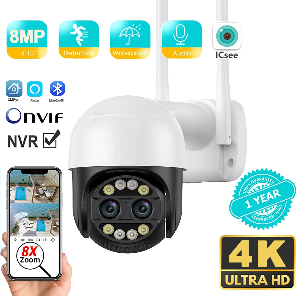 8X Digital Zoom 8MP PTZ WiFi Camera Dual Lens Night Vision Human Detection CCTV Video Surveillance Camera 4K Security IP Camera