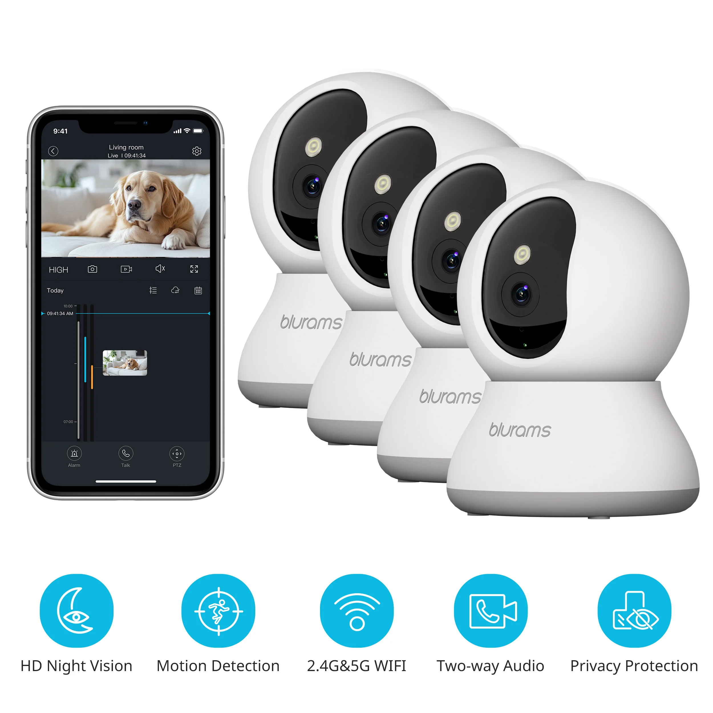Blurams 1-4PCS Indoor Security Camera 2K, Home Security Camera for Dog/Elder, Security Camera with One-Touch Call Update A31S
