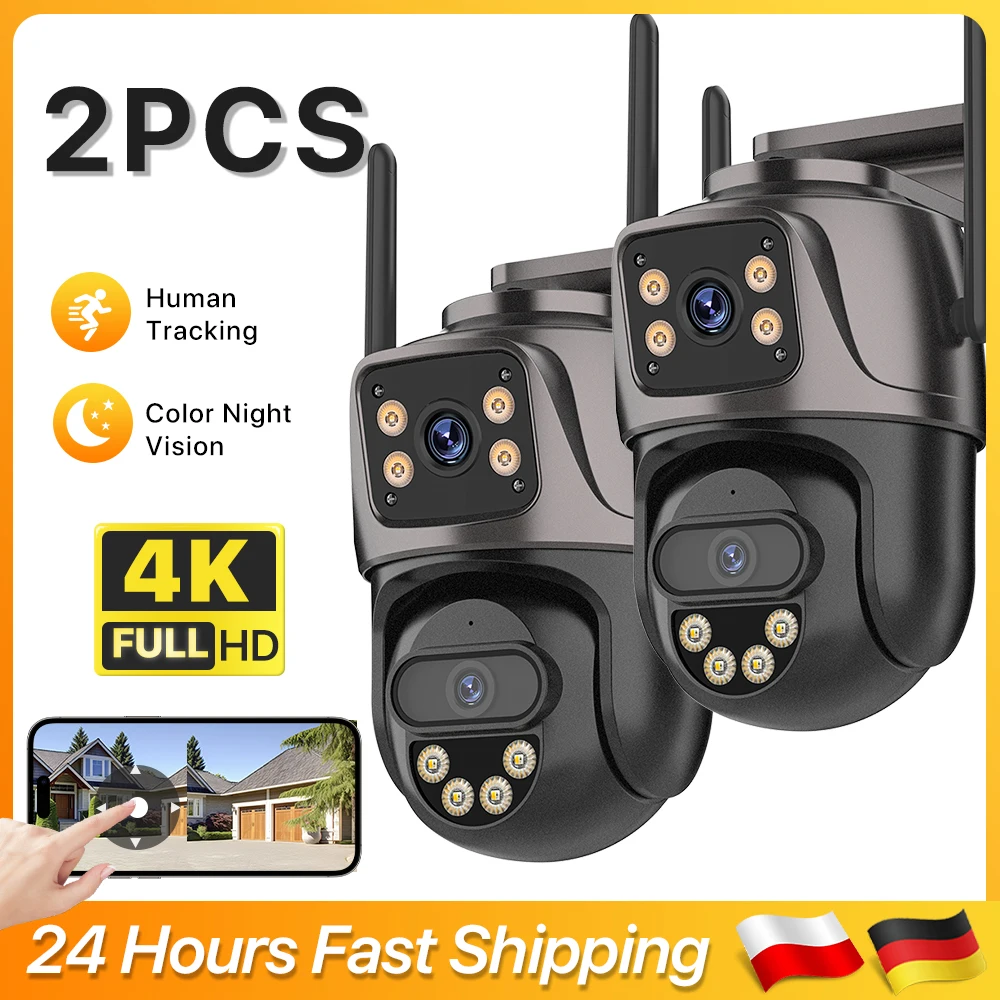 2PCS WIFI Camera Dual Lens Dual Screen 4K IP Camera Outdoor Auto Track IP66 Waterproof Color Night Video CCTV Surveillance iCSee