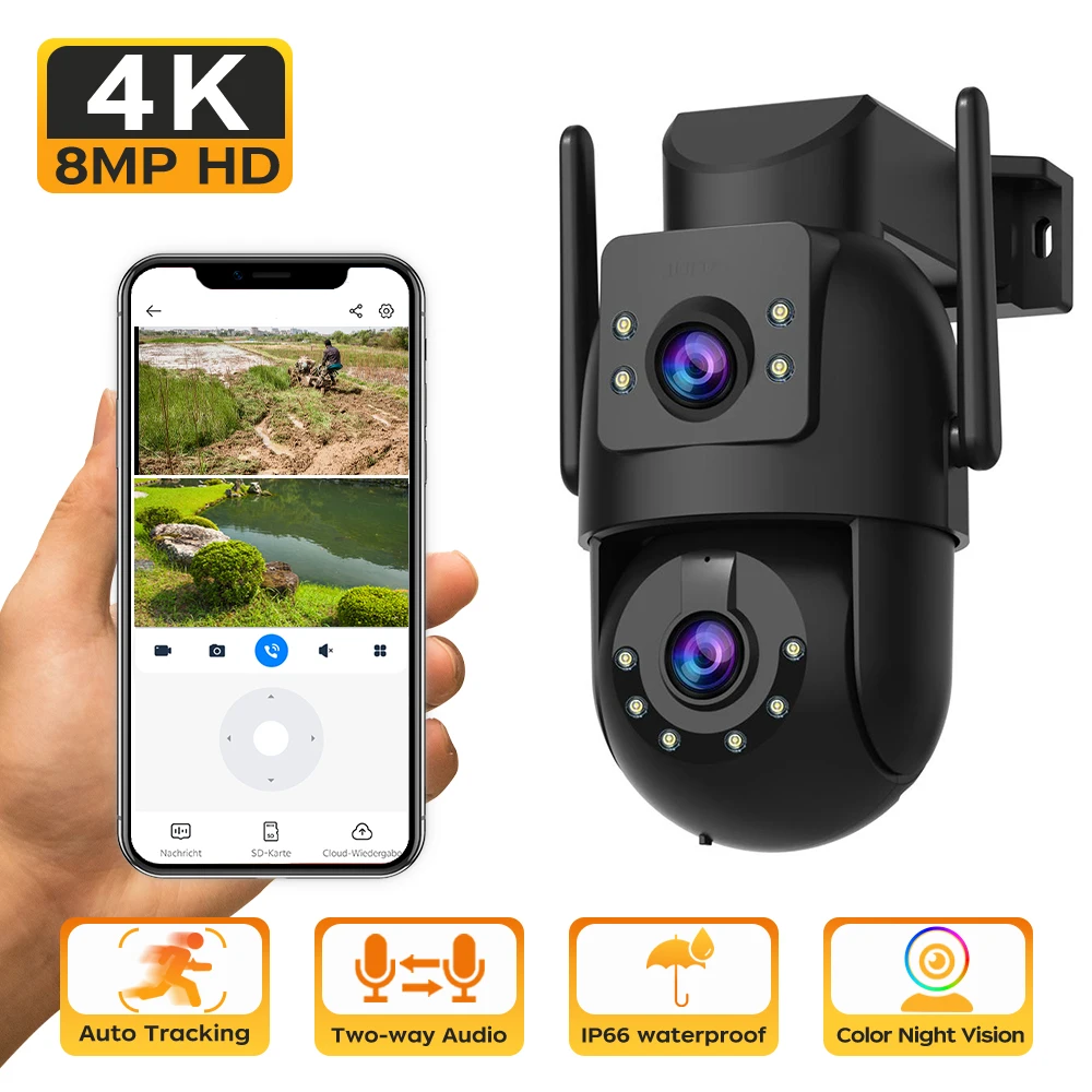 JOOAN 8MP WiFi Security Camera Outdoor Dual Lens Dual Screen 5X Zoom PTZ Camera Auto Tracking Night Vision IP Camera