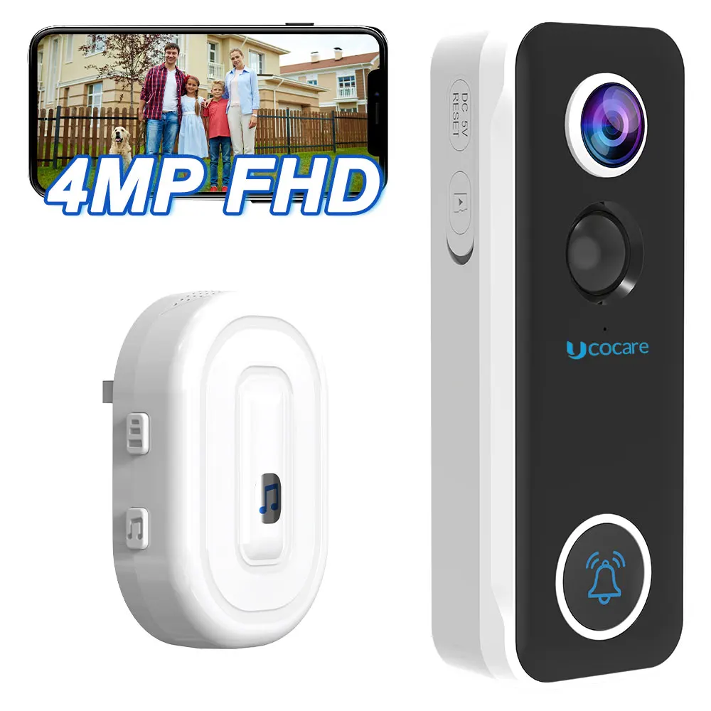 UCOCARE P5 WiFi Video Doorbell With Chime 4MP Doorbell Camera Wireless Outdoor Home Video Intercom Human Detection Support Alexa