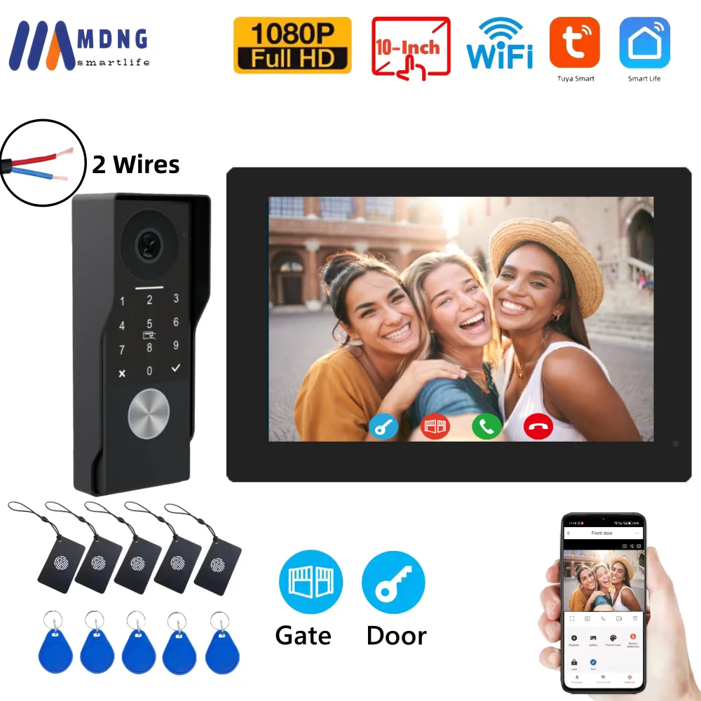 Tuya 1080P 7/10 Inch Color Touch Screen Video Intercom Kit with 2-Wire Analog and Wi-Fi for RFID Access Control System