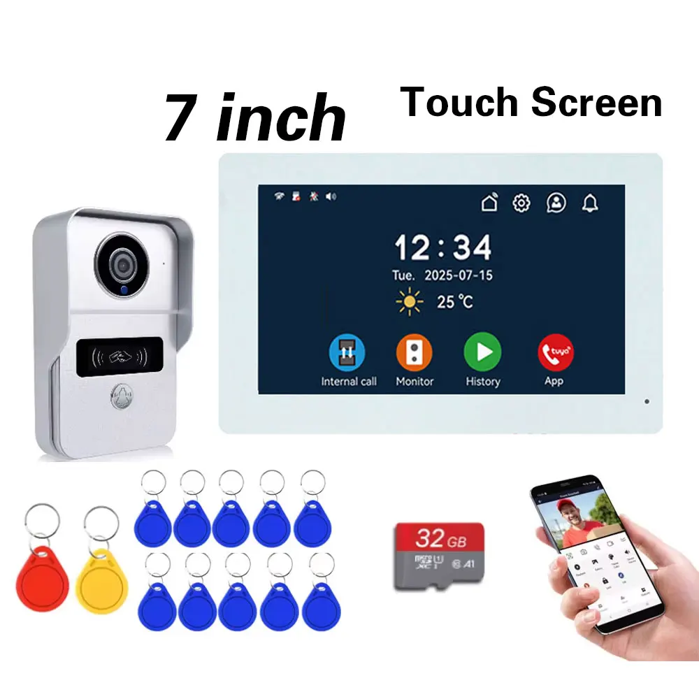 Tuya Wifi Smart Home Video Door Phone Video intercom 1080P Touch Monitor 7' 2-Wires Doorbell Door Camera Security System