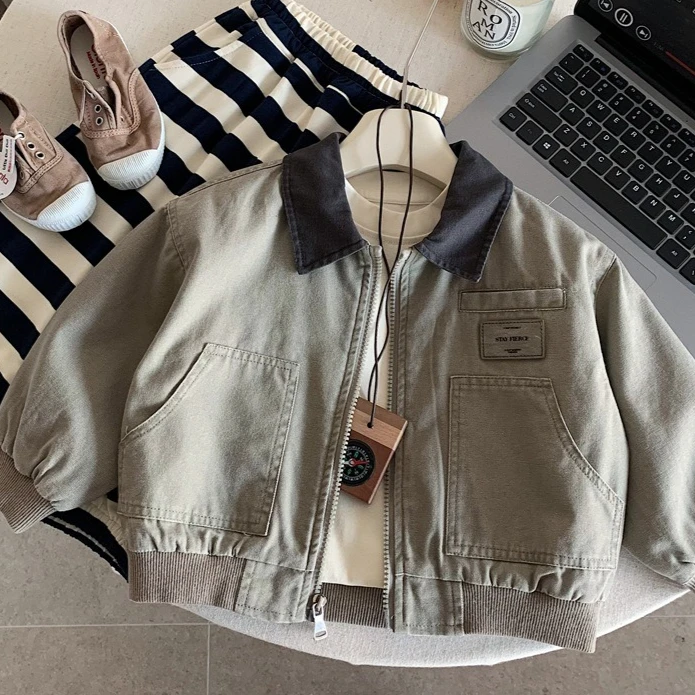 Baby Boys' Leather Jacket Spring and Autumn Children's PU Jacket Casual Motorcycle Jacket Girl Coat