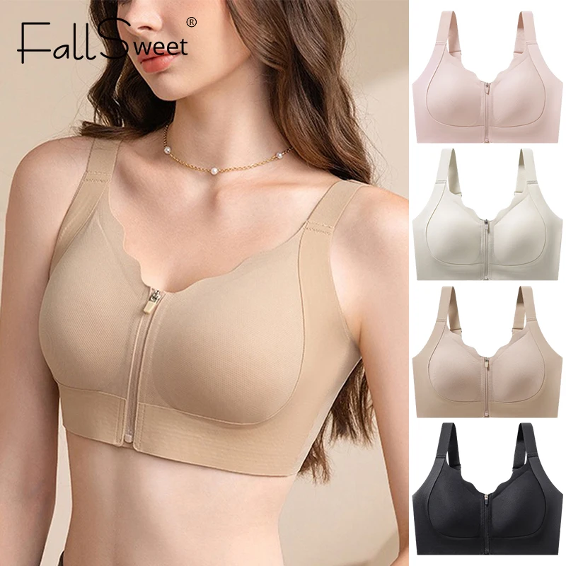 FallSweet Women's Sport Bra Front Zipper Wireless Bralette Invisible Bras Seamless Underwear Crop Top for Yoga Fitness Lingerie