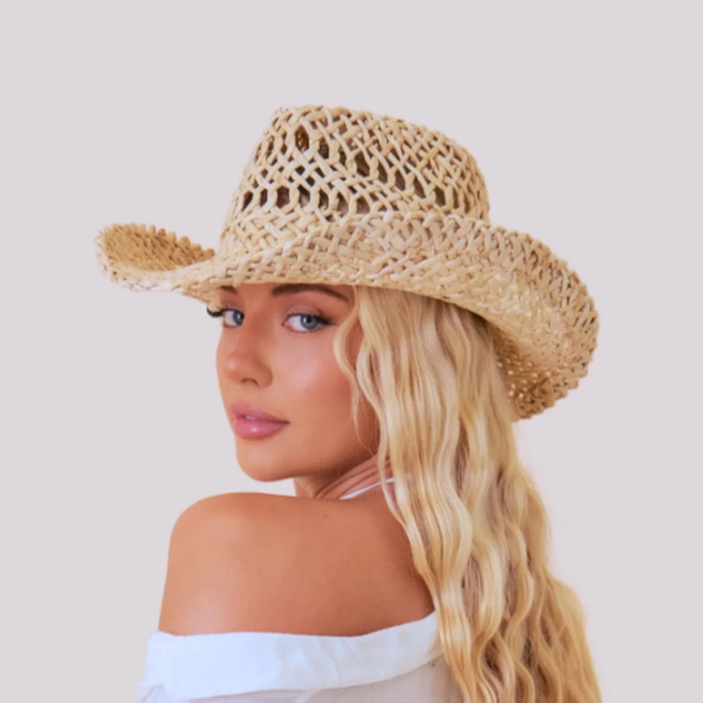 57-62CM A men's and women's wide-brimmed western cowboy hat stylish jazz hat, summer beach sun hat carrying a windbreak rope