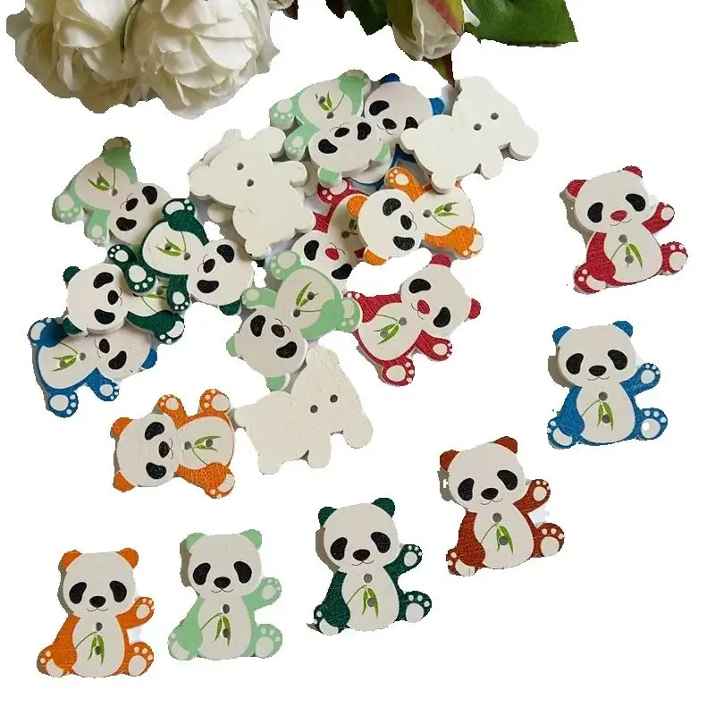 20pcs/lot Mixed Animals panda Shaped Scrapbook Buttons for Wooden Buttons Craft Sewing Accessories 28*26 mm