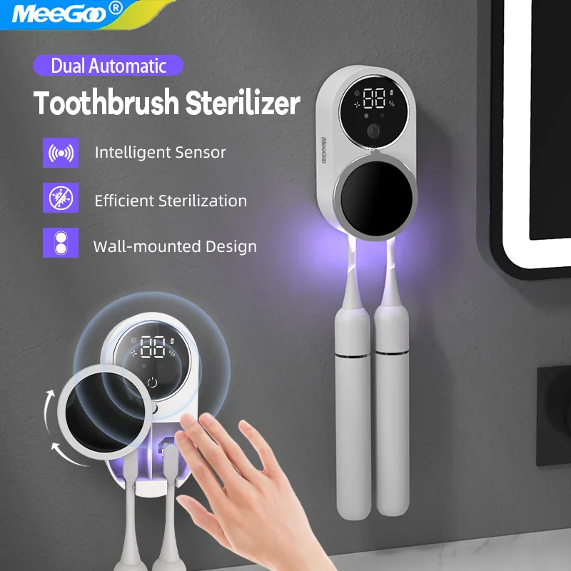 MeeGoo Rechargeable Portable UV Toothbrush Sterilizer Smart Screen Display Wall Mounted Disinfector Mini Sanitizing Case 2026