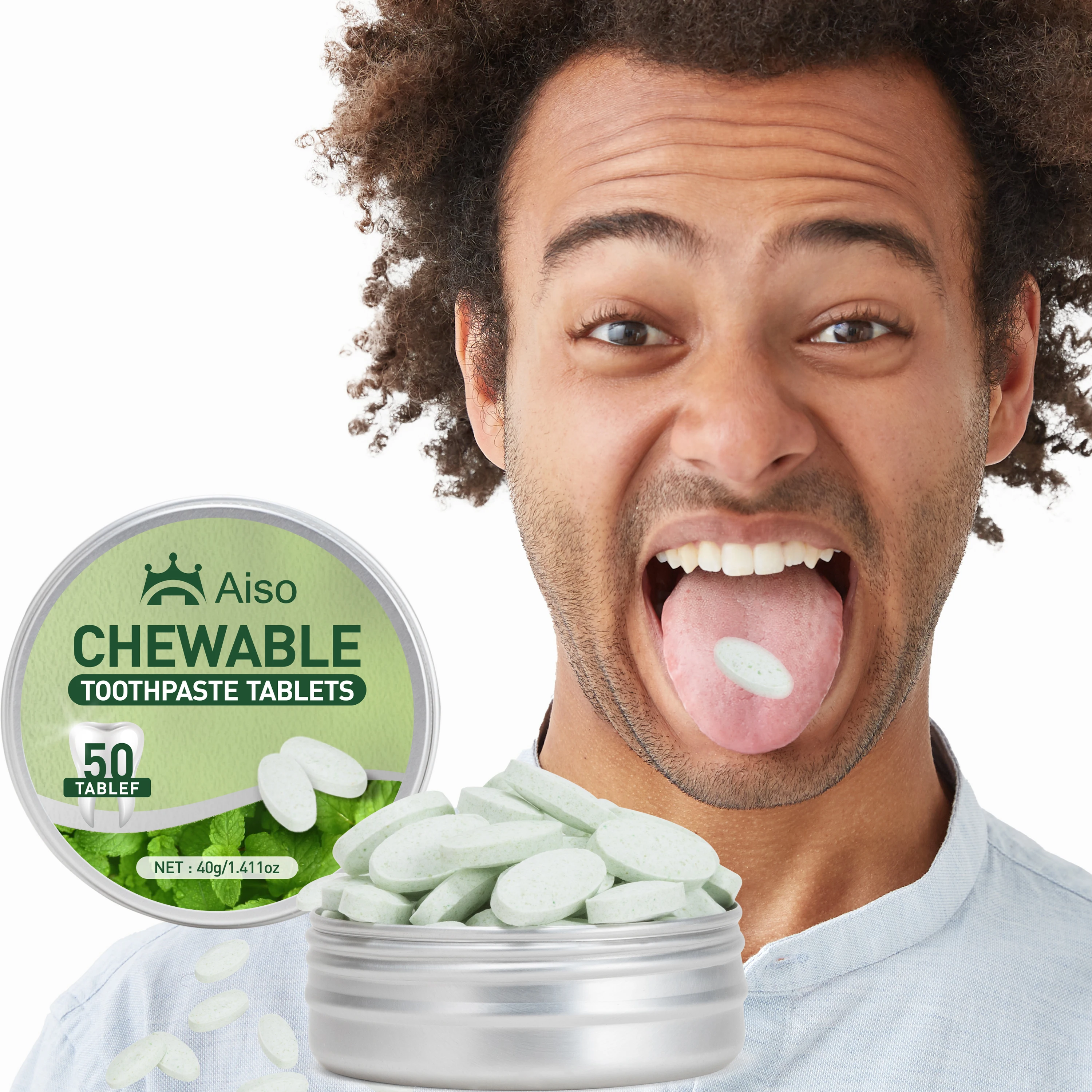 1PCS Travel size mouthwash tablets, mint flavor, travel toothpaste, keep fresh breath for a long time, do not swallow, 50tablef