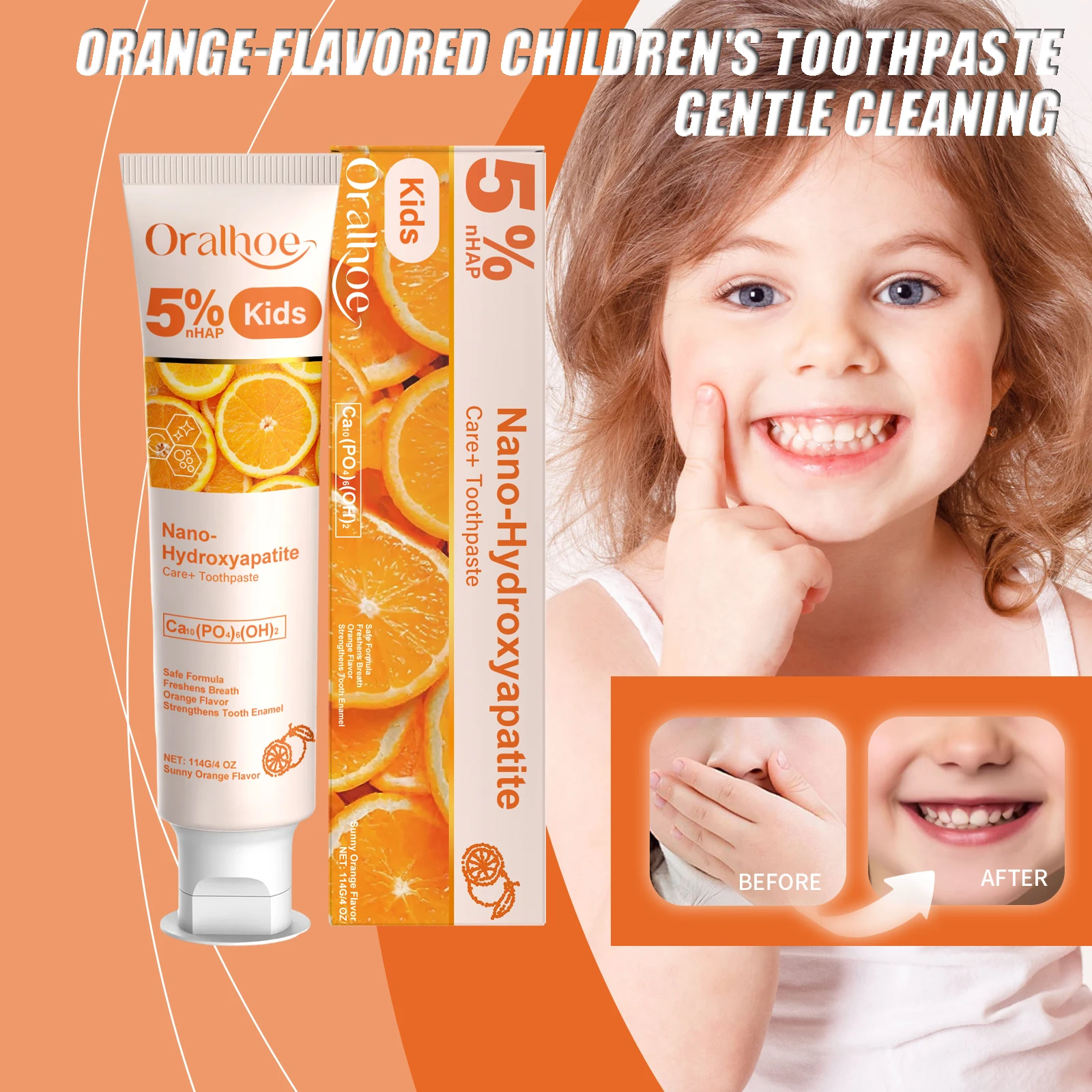 Orange-Flavored Children's Toothpaste Gentle Cleaning Remove Tooth Stains Protect Tooth Enamel Long-Lasting Fresh Toothpaste