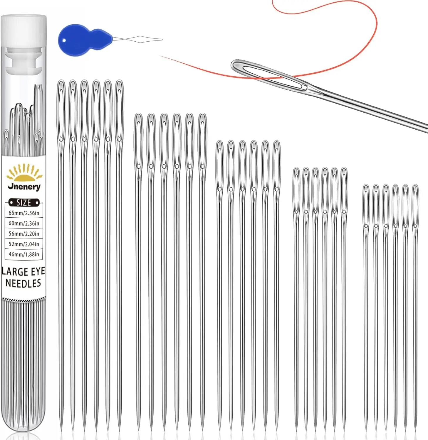 IMAZY 25PCS Embroidery Needles 5 Size Large Eye Hand Sewing Sharp Needles with Aluminium Storage Tube Threaders for Stitching