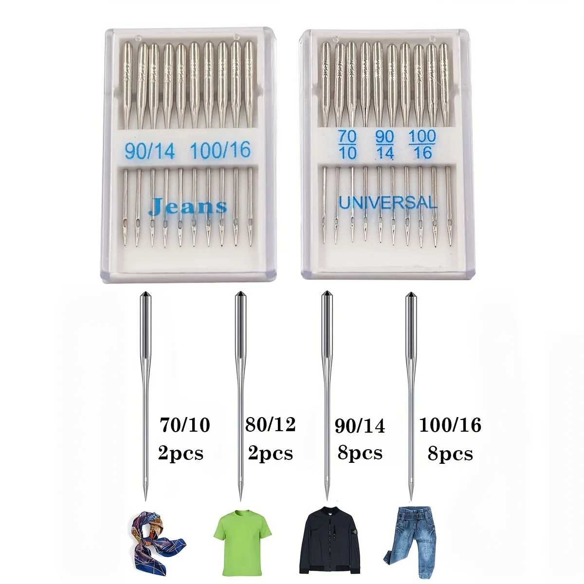 20-Piece Universal Sewing Machine Needles Set - 70/10 90/14 100/16 Assorted Sizes for Silk, Cotton, Jeans & Multi-Fabric
