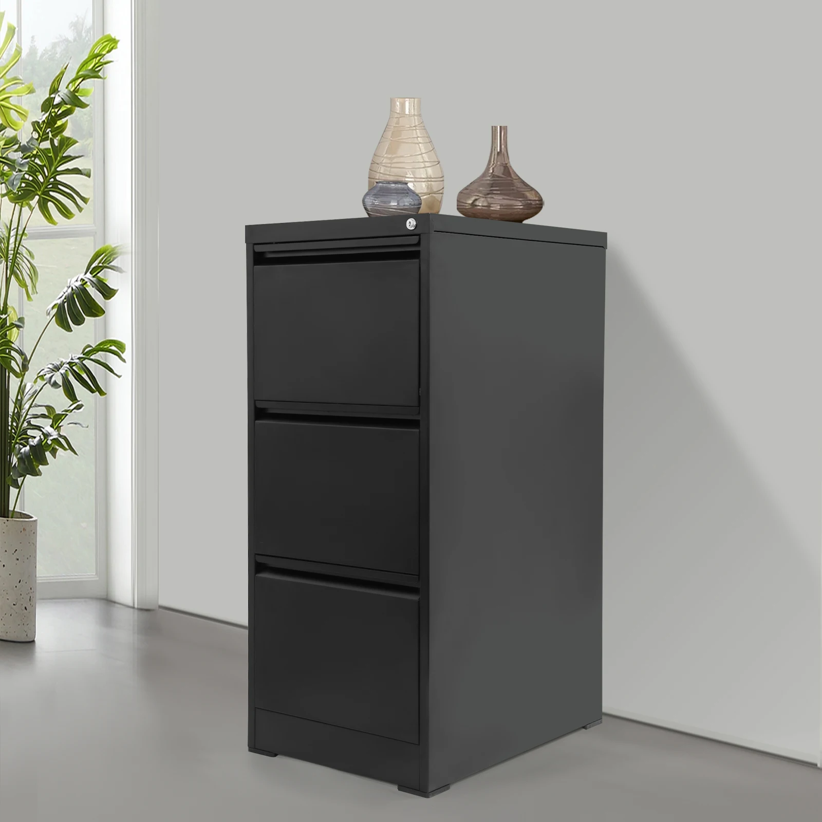 3-Drawer Steel Storage Cabinet with Lock, Lockable Filing Cabinet, Cold-Rolled Steel File Cabinet for Office & Home