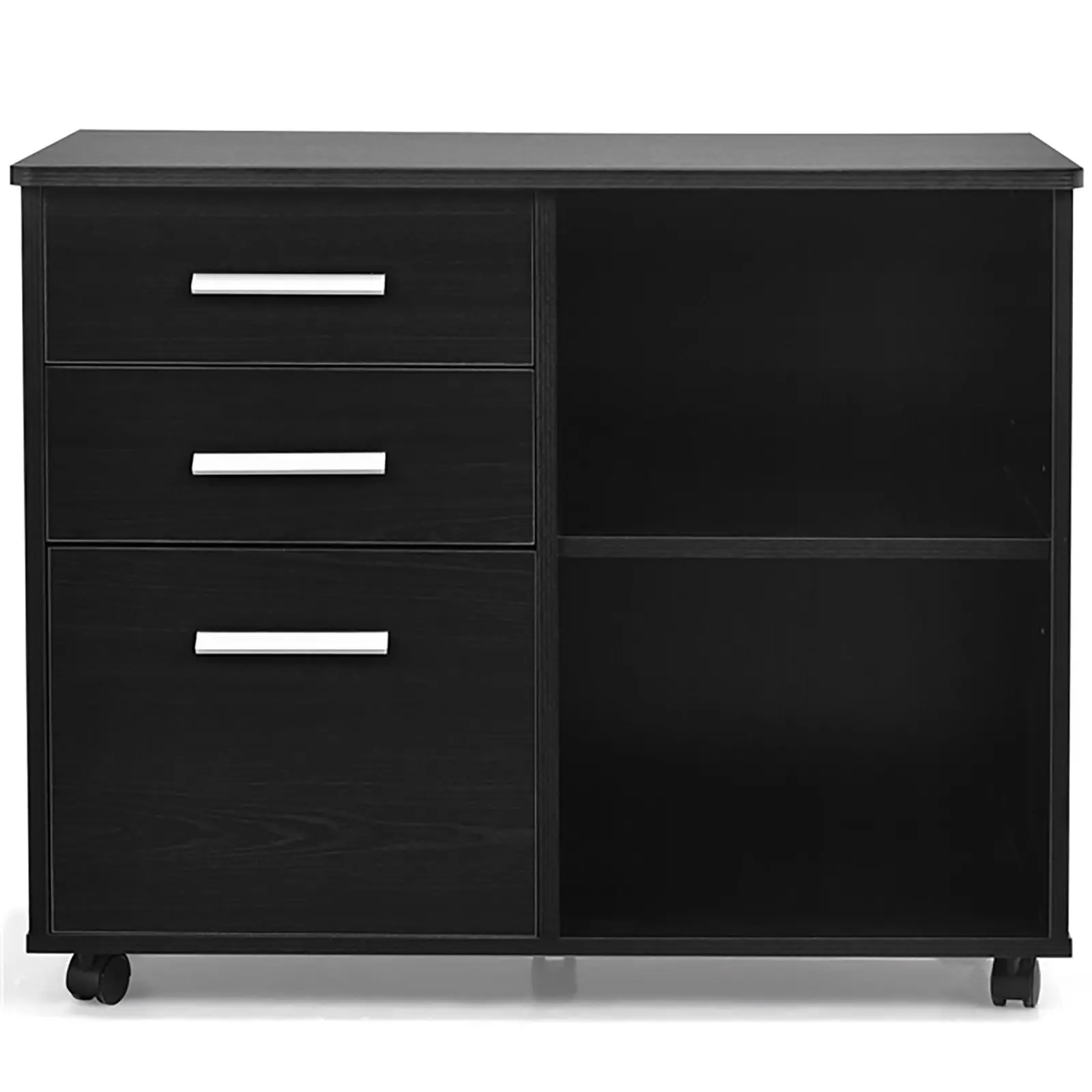 Rolling Container with 3Drawers,Mobile Filing Cabinet with Wheels,Office Cabinet,Printer Stand with Open Shelves,for Office,Home
