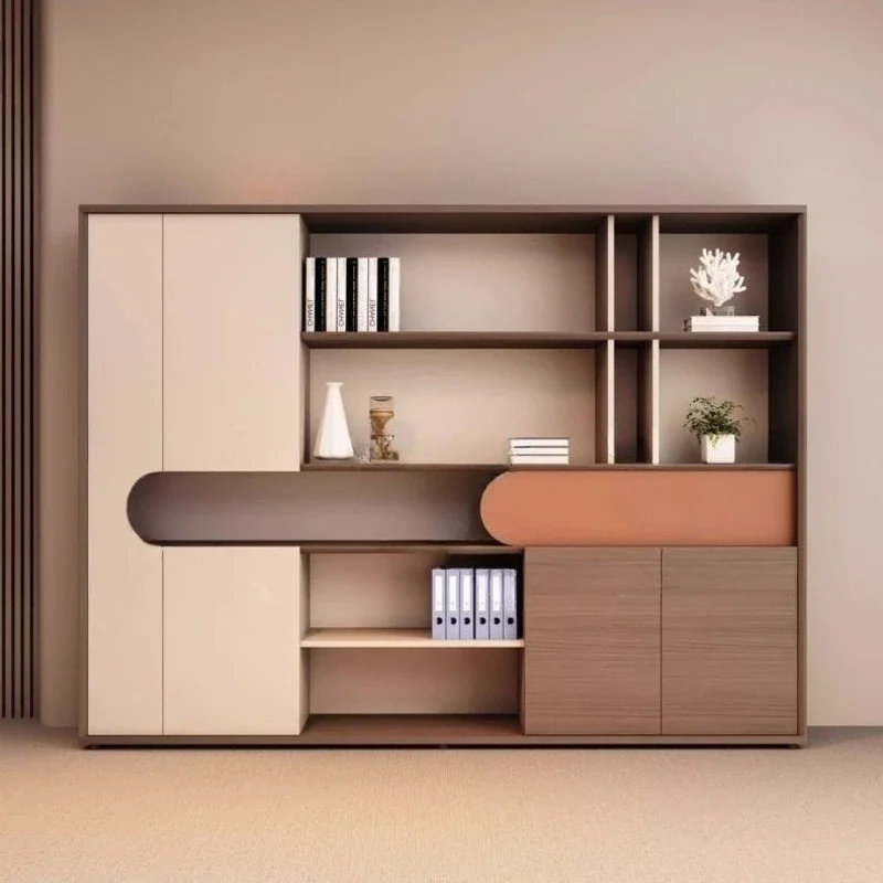 Office Bookcase Boss Background File Cabinet Tall Book Shelf Wooden Data Cabinet Storage Drawers Locker Wall File Freestanding
