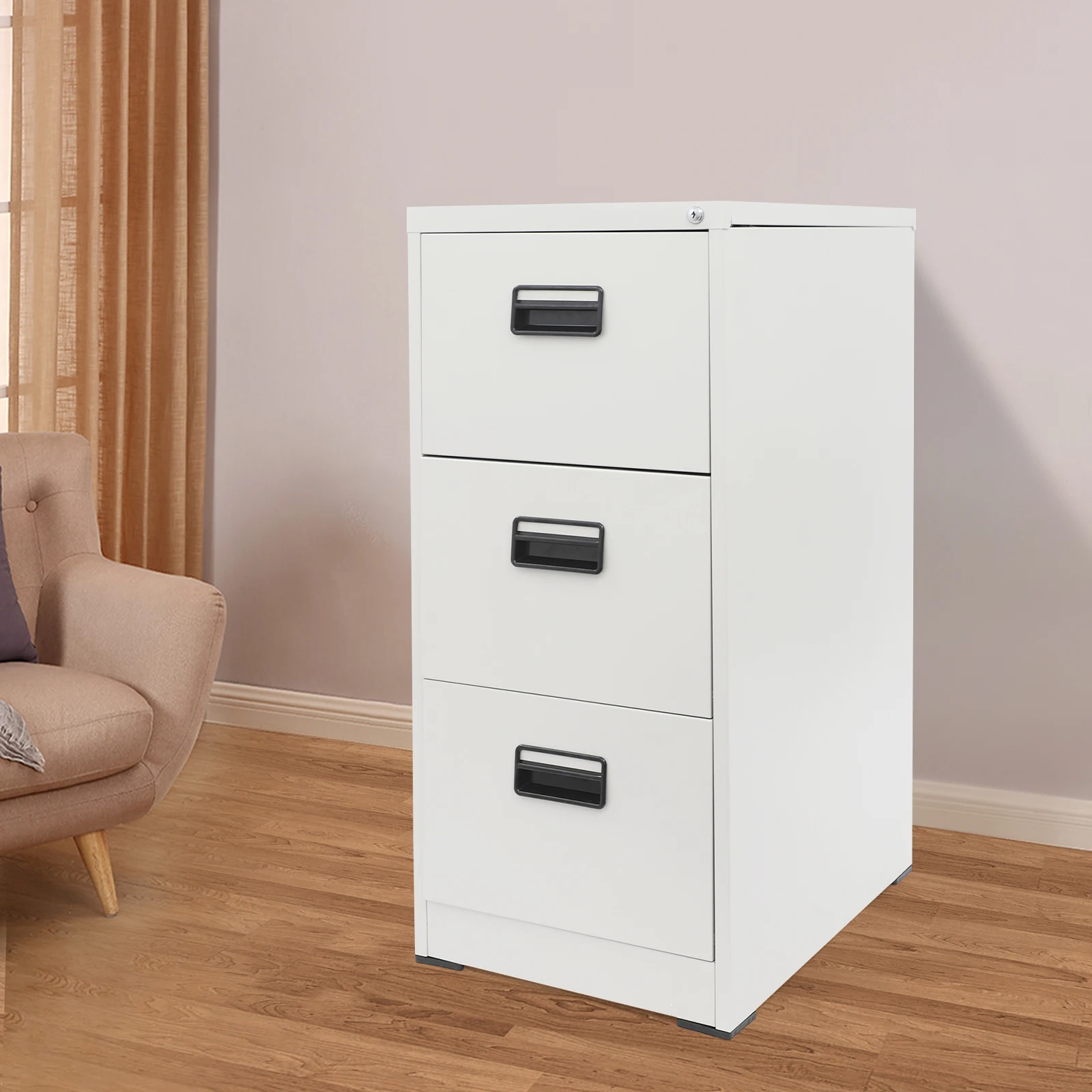 NEWEST White Lockable Filing Cabinet, Metal Filing Cabinets with 3 Drawers, Office Cabinet for Home Office