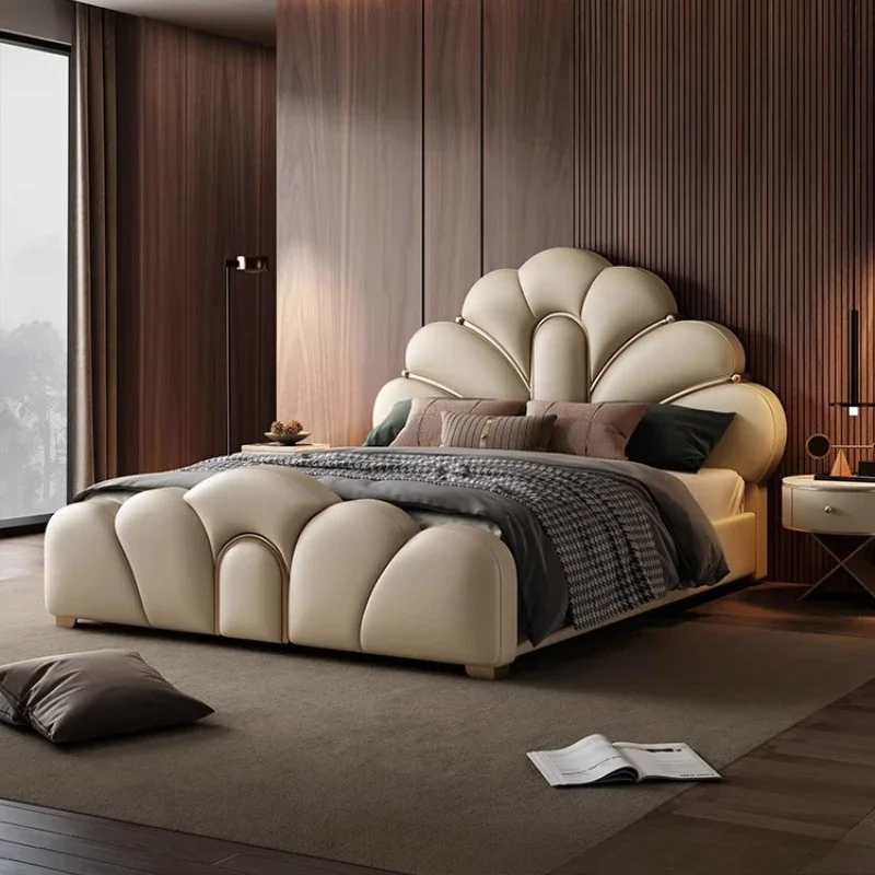 Lit Luxury Wooden Cama Matrimonial Bedroom Furniture Headboard Modern Double Bed King Size Frame Queen Full Leather Bed Twin