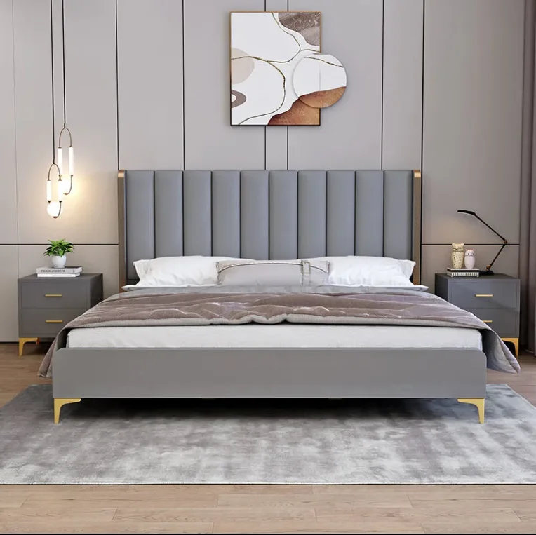 Nordic California king Bed Storage Ottoman New Design Top Fabric Solid Wood Double king Size Bed Fabric Raised Single Bed