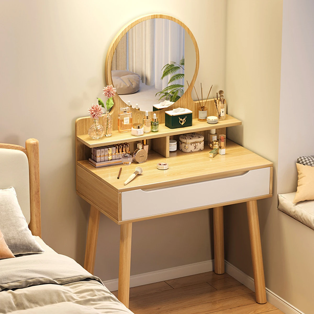 Makeup Table Nightstand with Drawer Storage Rack Minimalist Style Dressing Table with Mirror Cosmetic Table for Bedroom