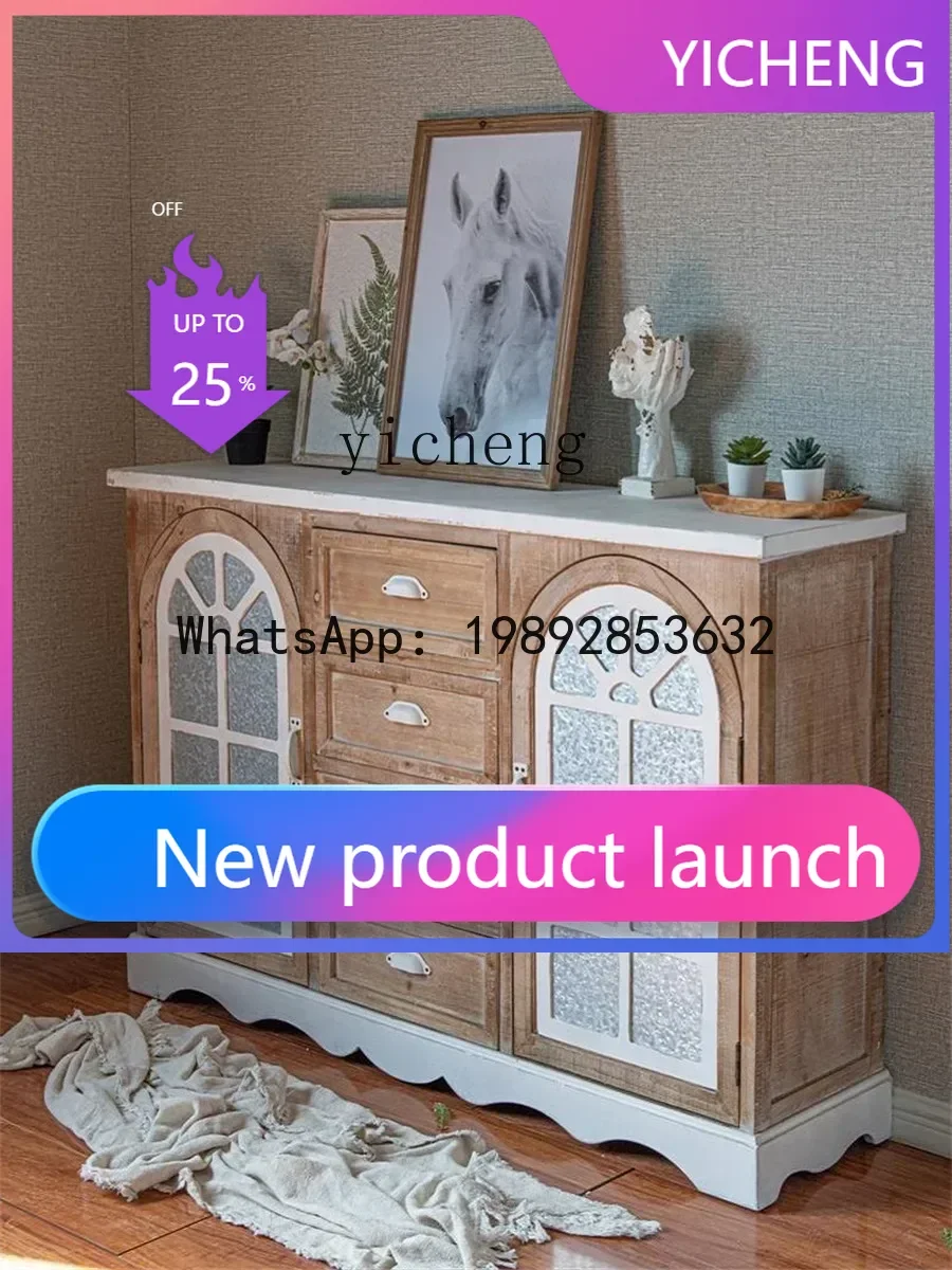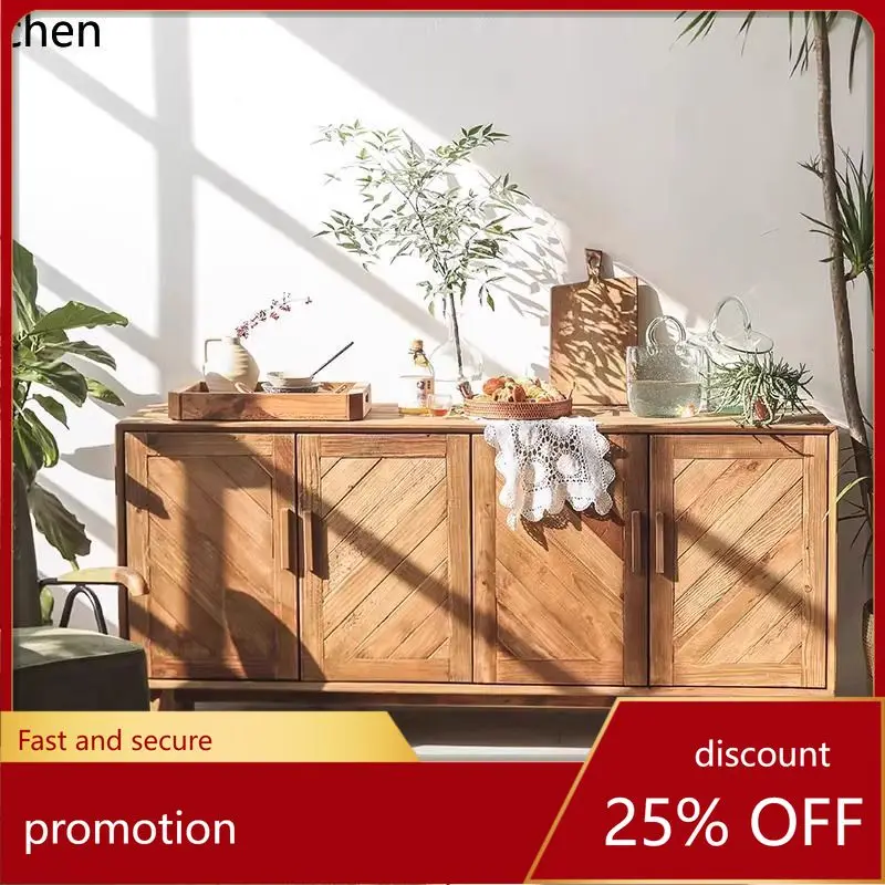 LYY Retro Distressed Solid Wood Sideboard All-in-One Cabinet Combination Dish and Bowl Locker Multifunctional
