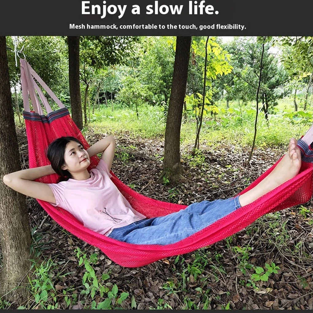 New Ice Silk Outdoor Camping Swing Hammock Sturdy Portable Breathable Mesh Ice Silk Hammock Bed Hang Cooling Hammock For Garden