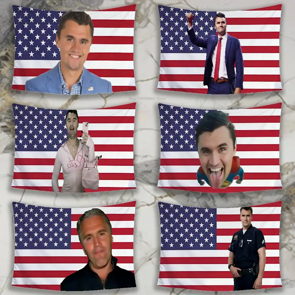 C-Charlie K-Kirk American Hanging Flags Garden Banner Garage Decoration Wall Decor Tapestry Outdoor Home Items