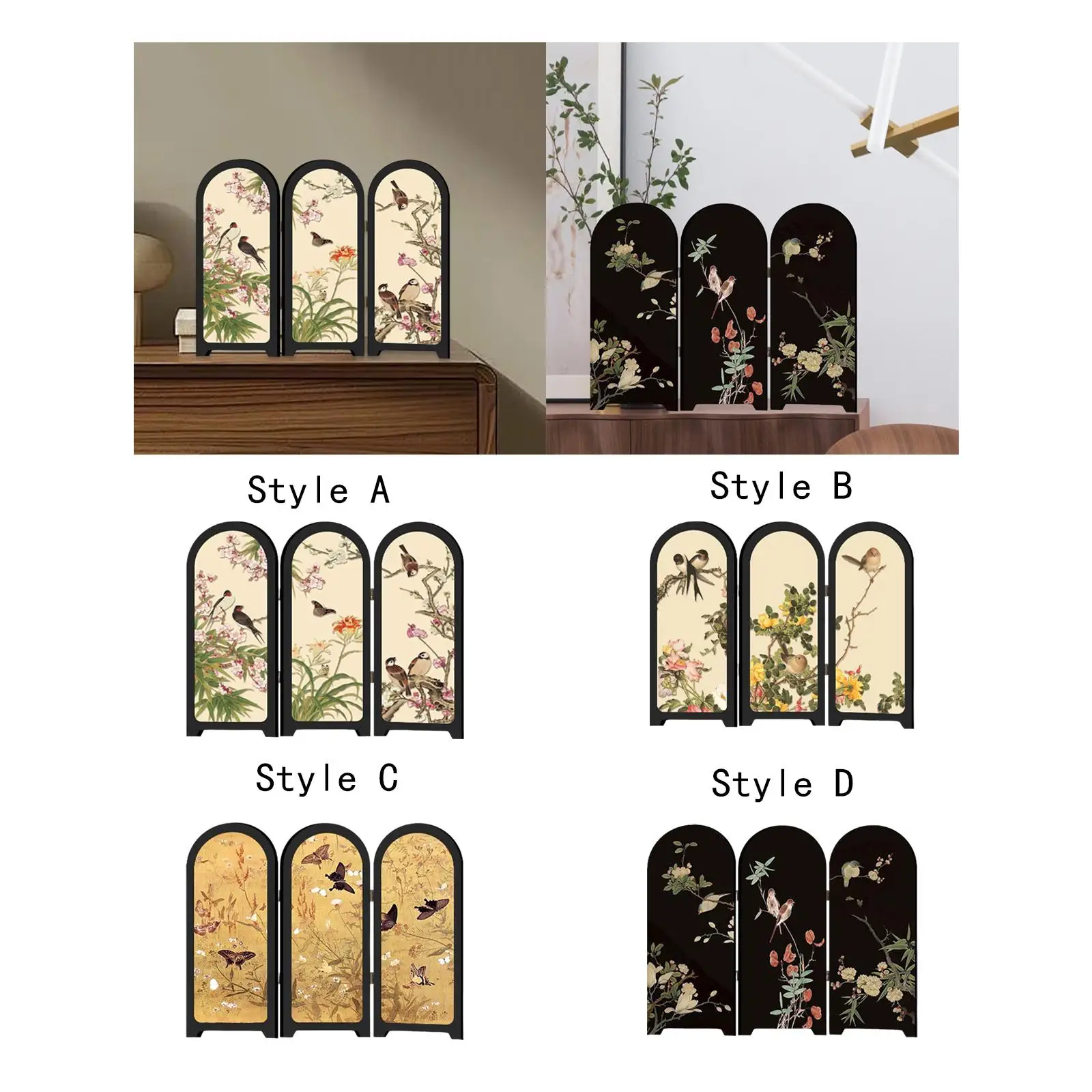 Mini Desktop Folding Screen Aesthetic Decorative Crafts 3 Panel Divider for Living Room Bedroom Countertop Office Dining Room