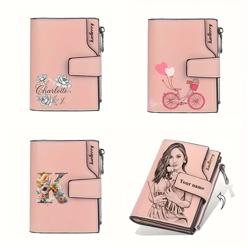 Custom Picture Engraving Wallet Women's Photos Engraved Trifold Photo Wallet Long Section Hand Customize Mother's day gift