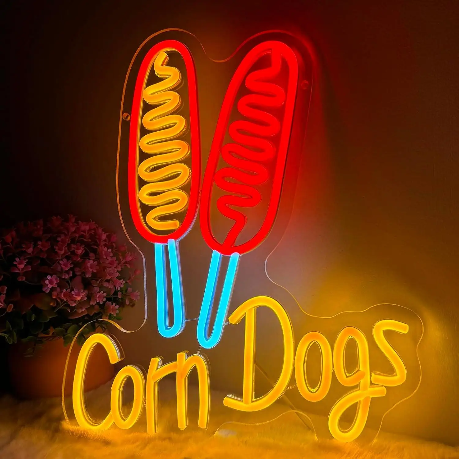 Corn Dog Neon Sign Snack USB Dimmable LED Neon Lights for Restaurant Dining Party Wedding Bar Club Business Window Wall Decor